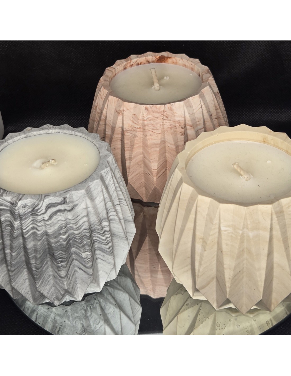 Les pots sont en Jesmonite, produit naturel est réalisé main, rempli de cire végétale.