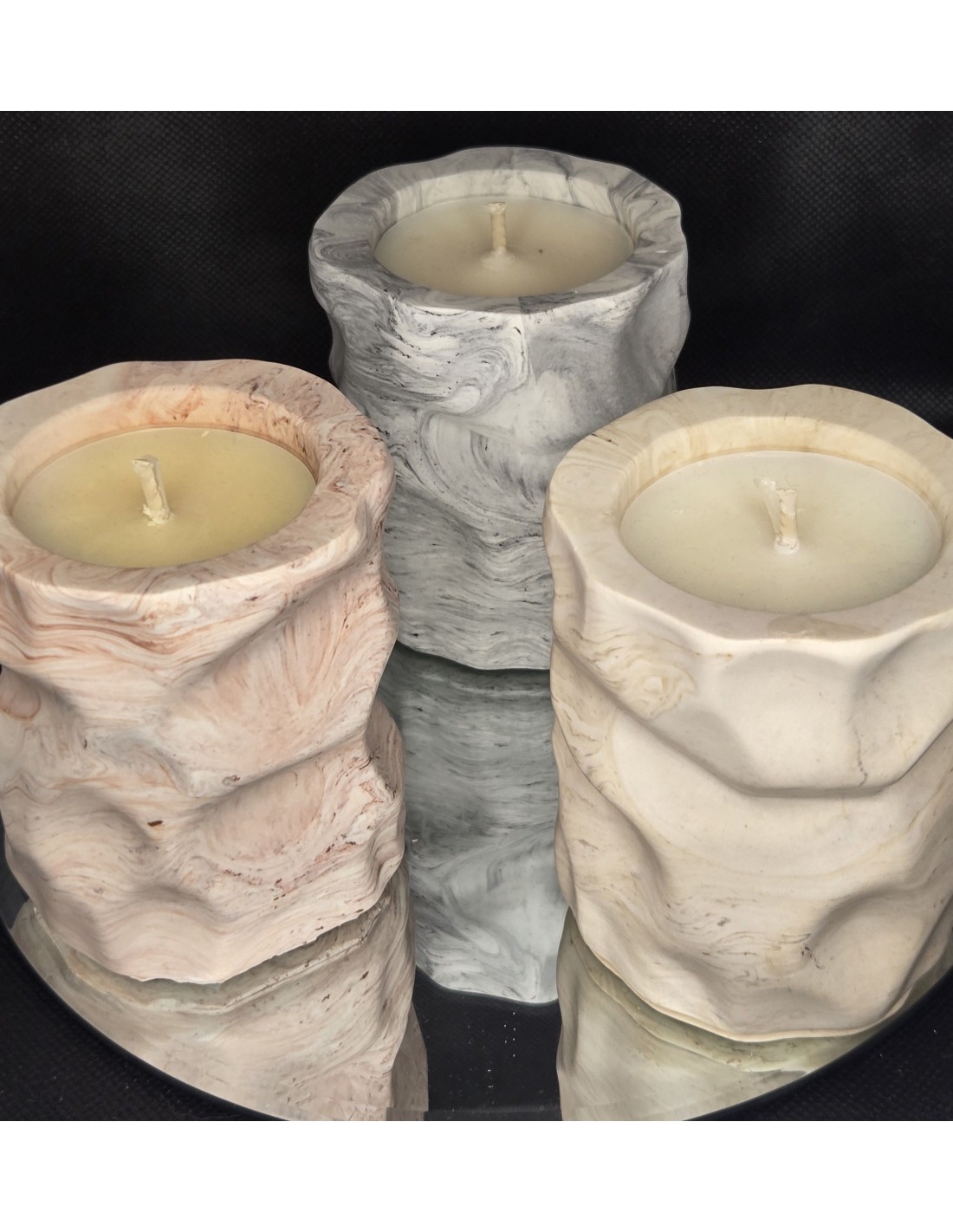 Les pots sont en Jesmonite, produit naturel est réalisé main, rempli de cire végétale.